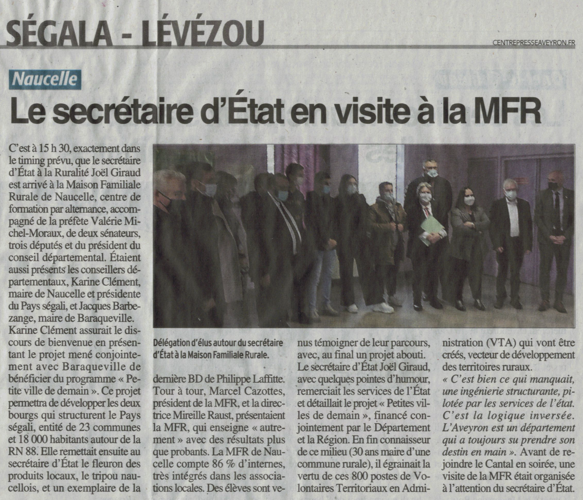 Régulièrement, les élèves mènent des actions relayées sur le territoire par la presse : animation, opération de développement durable, projet intergénérationnel, partenariats avec les associations du territoire (Centre social, Club pétanque, Fédération de pêche, Club maillet quilles...), anniversaire de la MFR, projection débat, semaine du gout...